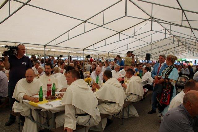 Goste, a osobito mladomisnika za ručkom pozdravili su Župnik Matija i fra Slavko Slišković, provincijal.